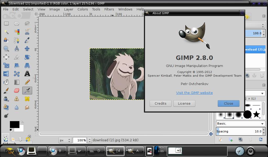 $ sudo apt-get install gimp Untuk mendownload source files, installer untuk Windows and Mac OSX, lihat di halaman download Gimp.